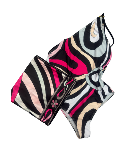 STOCK One Shoulder Print Luxury Two Pieces Swimwear With Beach Scarfs Sexy Women Designer Swimsuit