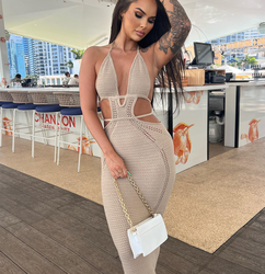 STOCK 2Colors Hollow Out Knitted Crochet Beachwear Cover Ups Streetwear Casual Women's Long Dress