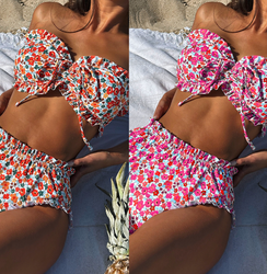 الأكثر مبيعًا في المخزون طقم بكيني ملابس سباحة بخصر مرتفع للنساء بطباعة مخصصة